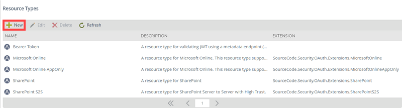 - Click New from the Resource Type view.