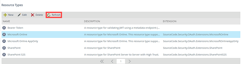 The Refresh button allows the refreshing of the Resources Types list after changes have been applied and provides an updated list of Resource Types view.