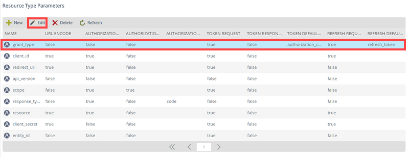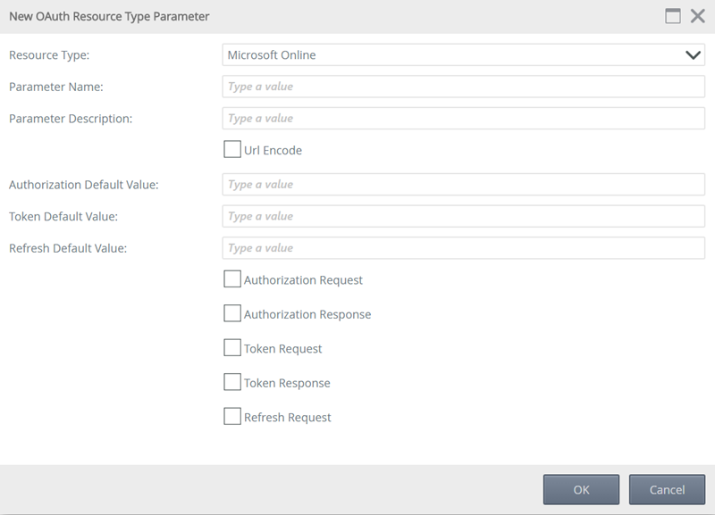 - OAuth resource type parameter default values - Authorization, token, and refresh default values.