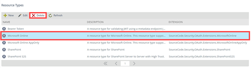 - Select the Resource Type you want to delete by clicking on it and click Delete.