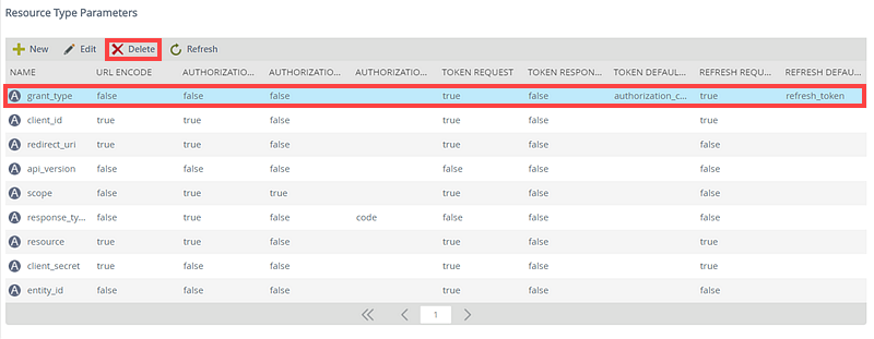 - Select the Resource Type Parameter you want to delete by clicking on it and click Delete.