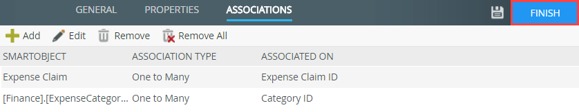 - Configure the association so that each Expense Claim Line Item has a single [Finance].[ExpenseCategory] and a [Finance].[ExpenseCategory] can have many Expense Claim Line Item. SmartObjects. Select the Use Existing Property radio button, then click NEXT. Once again, each line item record will have a single category, while each category may have many line items.