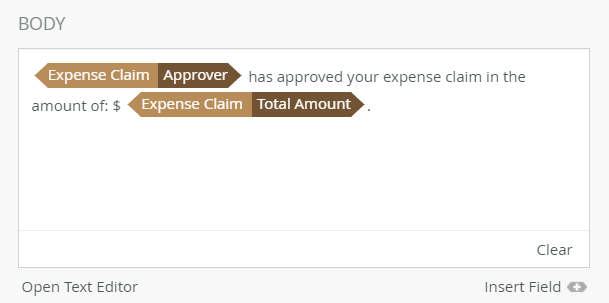 - You will include some information about the claim in the message body. This allows the approver to make a decision without having to open the form or the list item. Click in the BODY section of the email after the first line and add some descriptive text such as: