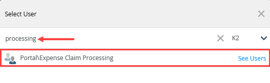 then select the Expense Claim Processing group and click OK. (If you do not see the processing group, you can use the default Originator value.)