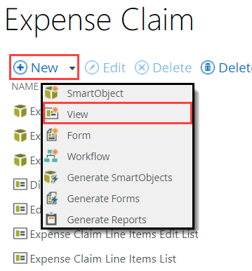| Data Source | The Expense Claim SmartObject should already be selected, but if it is not, use the ellipses to locate and select theExpense ClaimSmartObject.![]() | This is the SmartObject that you want to display on the list view. |