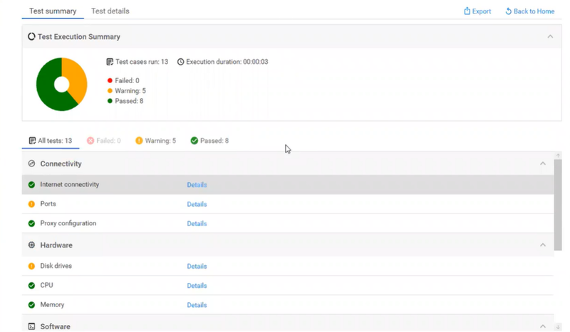 This enables you to easily share the test results with Customer Support, or to an IT professional who is aiding in the installation or upgrade.