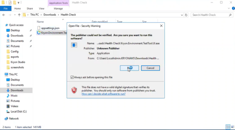 In the Download folder, run the Kryon.Environment.Test.Tool.UI.exe