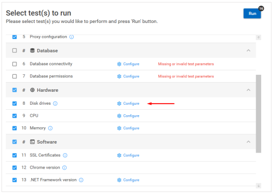 Under each category, there are several checkups that are performed. You have the option of selecting which will be done, by checking or unchecking the boxes. Once your choice selections have been made, you will be able to see how many checkups will be performed by looking at the listed number.