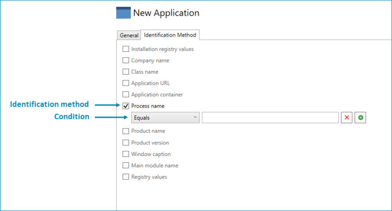 There are numerous methods by which an application can be identified, and it is possible to specify more than one for each application. Additionally, within each method, one or more conditions can be specified.