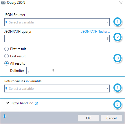 Use a JSONPath query to extract specific information from JSON data stored in a variable and place it into a new or existing variable.