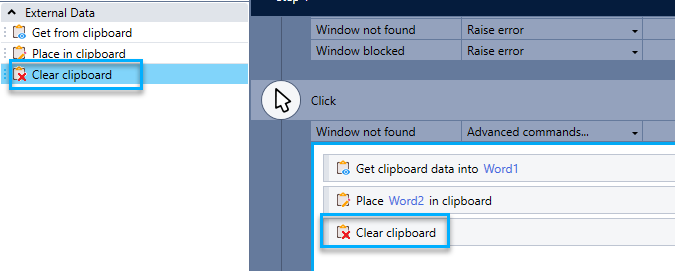 Using the clipboard is essential to copy information. Use the Clear Chipboard command to clear the clipboard whenever the information in the clipboard is no longer relevant to the task (or to next step). This way you can ensure the Wizard is using the relevant and updated information from the clipboard. The command can be useful in case the copy command fails. In this case, the Wizard won't paste information that is old or irrelevant to the task since the clipboard has been cleared.