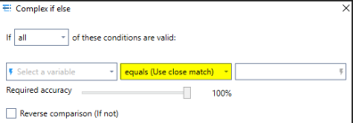 The first step in using the Complex if else command is to define the conditions (i.e., set up comparisons).