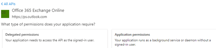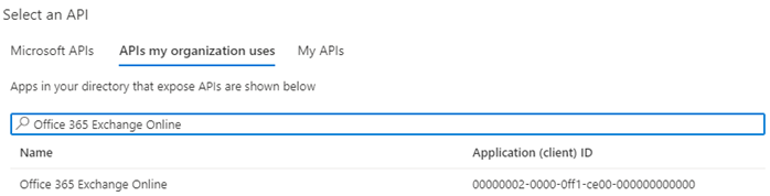 On the right-hand side click APIs my organization uses and search for Office 365 Exchange Online.