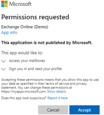 Integrating the product with Exchange Online using OAuth with lesser permissions