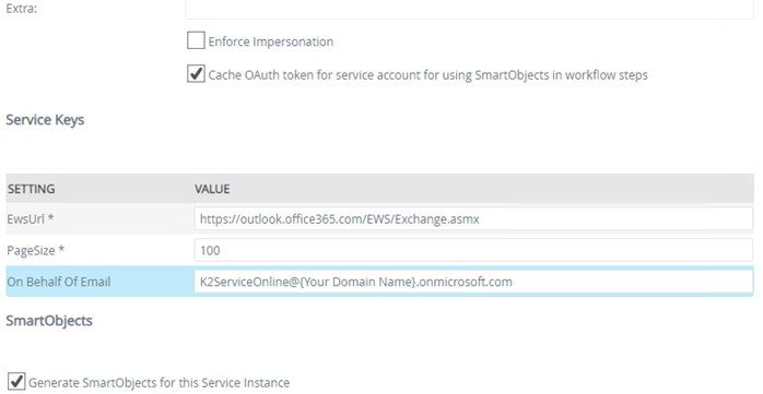 - Edit your Exchange Online service instance and check the Generate SmartObjects for this Service Instance box.