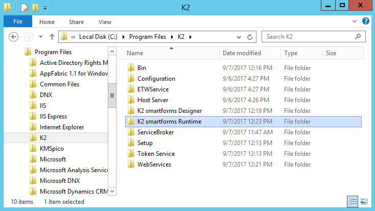 - Copy the smartforms Runtime folder, located at <install drive>:\Program Files\K2: