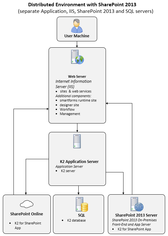 - The same version of the Nintex K2 for SharePoint app must be installed on all servers/Web servers in the distributed environment.