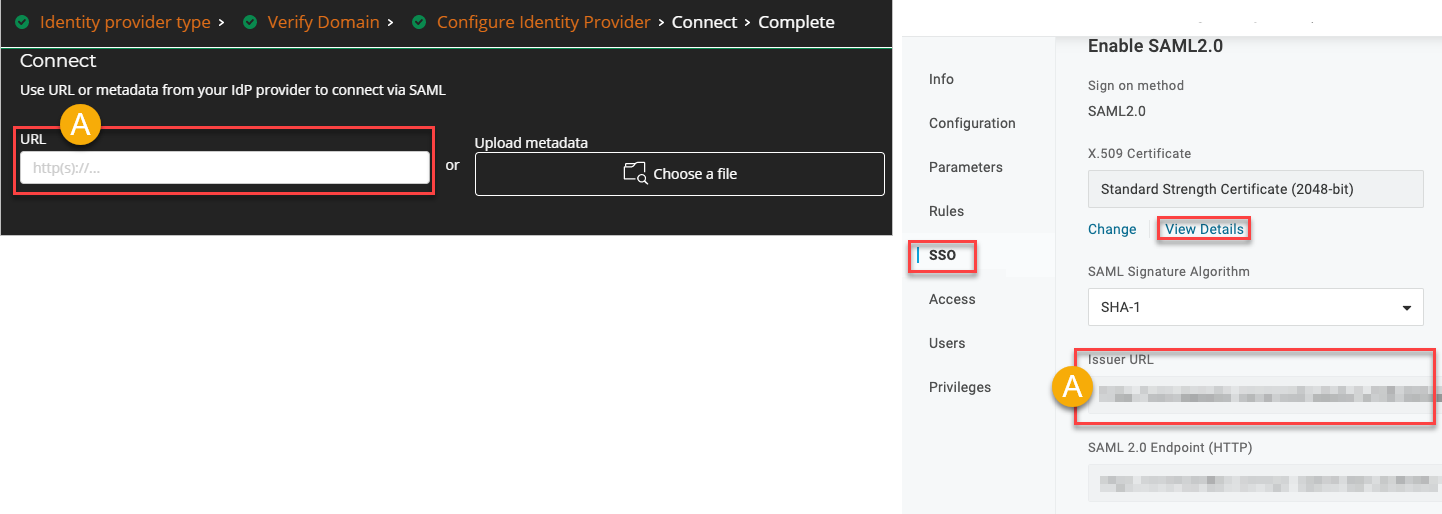 | Connect (This page displays only when you select SAML for Single sign-on (SSO) type) |