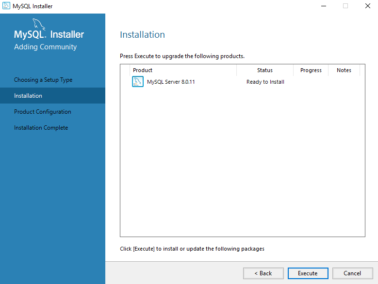 At the end of the configuration process, you will be prompted to apply the configuration. Click the Execute button, and you're done installing MySQL!