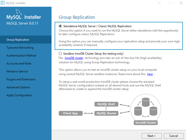 Select Standalone MySQL Server / Classic MySQL Replication