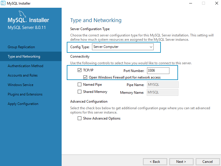 You can choose to change the default TCP port – 3306– if you wish. But if you do so, be sure to make note of it.