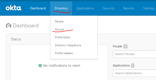 Sign in to your Okta application and go to the Admin Console Groups dashboard.